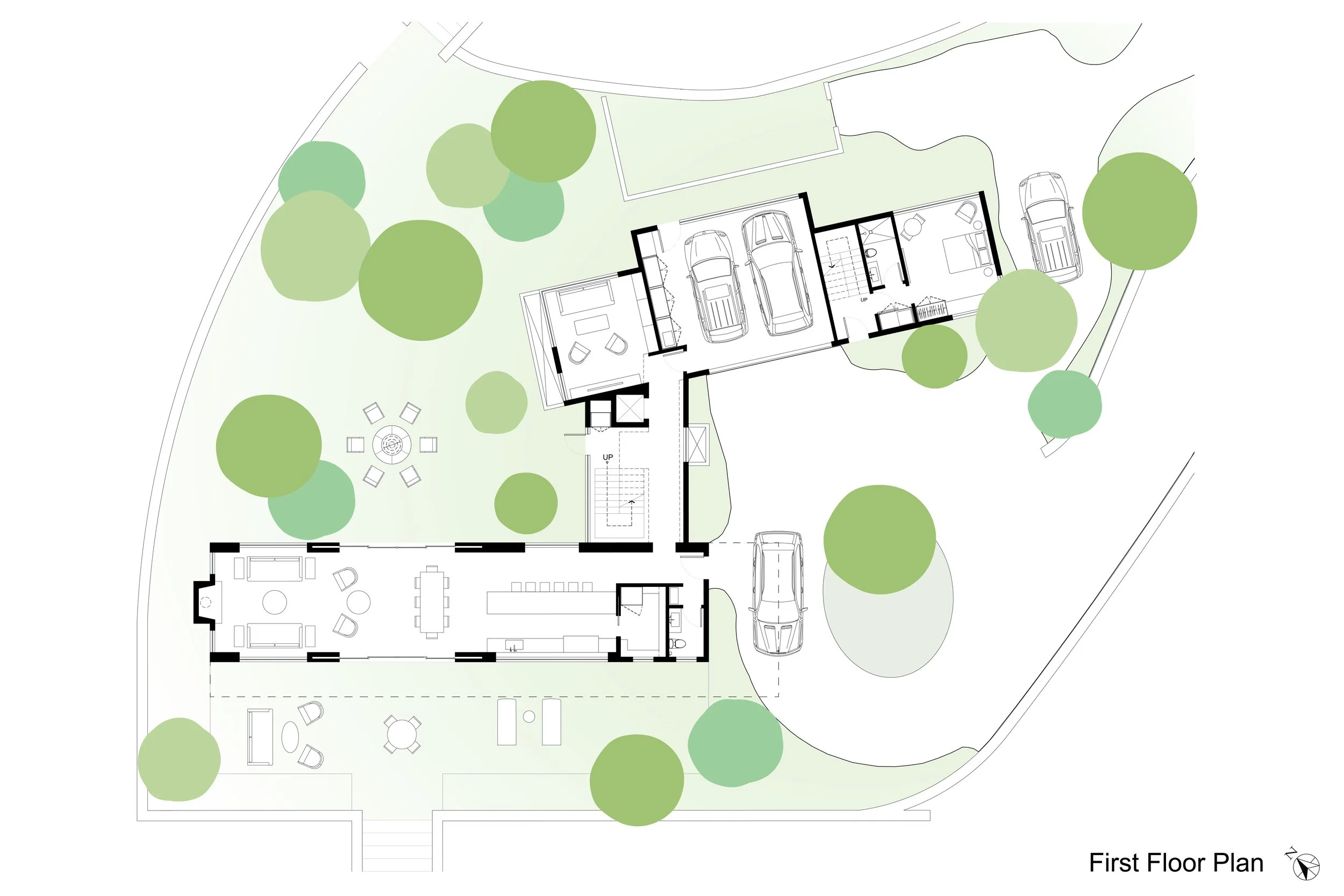 Accessory features of the site include a swimming pool, a pool powder and changing room “tower”, a barn and a water catchment facility.